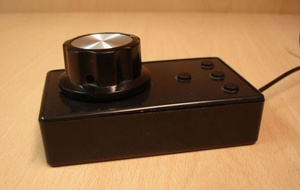 Ich habe eine USB-Mausplatine verwendet und den Scrollrad-Encoder durch einen Drehcodierer ohne Arretierung ersetzt. Ich habe ihn in eine Box eingefügt, in der alle Funktionen der Originalmaus erhalten bleiben (3 Tasten + Cursorzeiger). Es wird als zweite USB-Maus installiert.