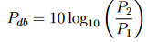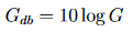 Leistung und Gewinn werden oft in Dezibel ausgedrückt, um ihren großen Wertebereich zu komprimieren, der häufig mehrere Größenordnungen umfasst. Ein Wert wird in Dezibel umgerechnet, indem man den dekadischen Logarithmus nimmt und mit 10 multipliziert.