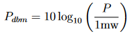 Um die absolute Leistung auszudrücken, werden Dezibel unter Verwendung einer spezifischen Referenzleistung berechnet. In (1) wird der Referenzwert darauf hingewiesen, dass es sich um eine einzelne Einheit derselben Einheiten handelt, in denen P ausgedrückt wird. Eine häufige Referenzleistung beträgt 1 mW, und die resultierenden Dezibelberechnungen haben die Einheiten dBm.