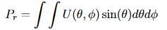Die Menge an Leistung, die von einer Antenne abgestrahlt wird, variiert mit dem Azimutwinkel θ und dem Elevationswinkel φ. Die Strahlungsintensität U(θ, φ) ist die Leistung pro Einheit des festen Winkels, die in eine bestimmte Richtung abgestrahlt wird. Die Gesamtleistung, die von einer Antenne abgestrahlt wird, ergibt sich durch Integration der Strahlungsintensität für alle Richtungen [7].