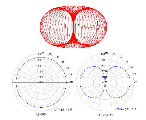 Die Gewinnung einer Antenne ist für ausgestrahlte und einfallende Energie identisch [7]. Der Antennengewinn kann grafisch durch ein Strahlungsmuster dargestellt werden, wie in Abbildung 1 gezeigt.