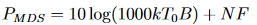 Die Empfindlichkeit eines Systems ist ein Maß dafür, wie klein ein Eingangssignal sein kann und dennoch ein nützliches Ausgangssignal erzeugt. Für die Zwecke dieser Forschung wird die minimal nachweisbare Signalstärke oder der Rauschpegel verwendet, um vorherzusagen, ob das System in der Lage ist, eine vom Gleichung (11) vorhergesagte Lecholeistung zu nutzen. Das theoretische minimale nachweisbare Signal kann berechnet werden, indem man die Rauschzahl (NF) des Empfängers addiert, die einfach der Rauschfaktor in Dezibel ausgedrückt ist, zum thermischen Rauschen. Der Rauschfaktor wird durch