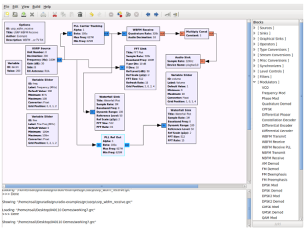 GNU Radio enthält einen phasenverriegelten Schleifen-(PLL) Trägerverfolgungsblock. Mithilfe eines PLL sperrt der Block die Trägerfrequenz des digitalen Fernsehsignals und verschiebt das Spektrum des Signals so, dass der Träger bei null Frequenz liegt. Die Ziel- und Referenzkanäle werden durch PLL-Trägerverfolgungsblöcke geleitet, um ihre Spektren auszurichten. Dies korrigiert mögliche Unterschiede in den Frequenzen, auf die die Empfänger abgestimmt sind, die durch Unterschiede in ihren Frequenzreferenzen verursacht werden.