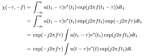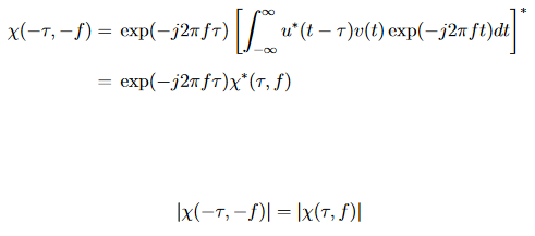 Die Symmetrieeigenschaft der Kreuzambiguitätsfunktion besagt [13, 20]